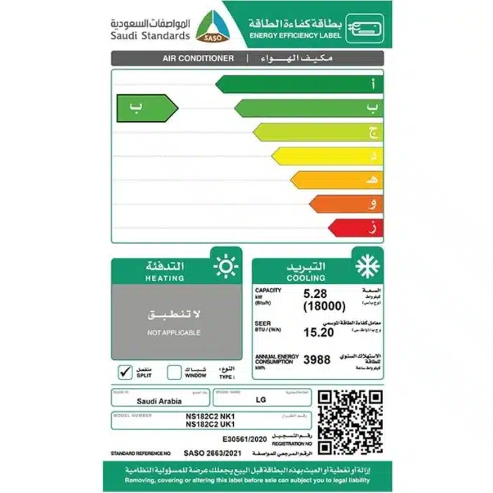 مكيف ال جي سبليت سمارت 18000 وحدة – انفرتر – بارد NS182C2