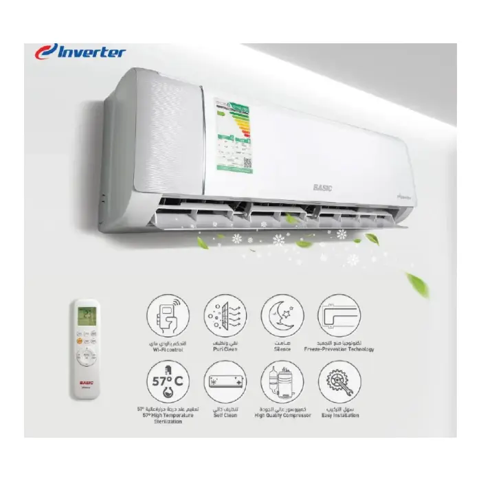 مكيف سبليت بيسك 12000 وحدة انفيرتر حار/بارد – أبيض BSACQ-FI12HB